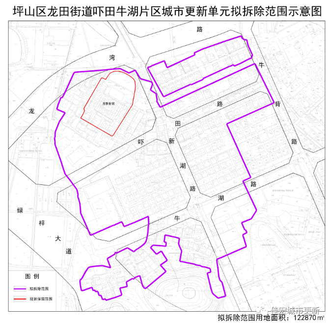 嚇田牛湖片區(qū)城市更新單元位于龍?zhí)锝值例執(zhí)锷鐓^(qū),牛背路與嚇田二路交匯處西南側(cè),擬拆除范圍用地面積約122870㎡,擬更新方向?yàn)?/span>居住等功能。