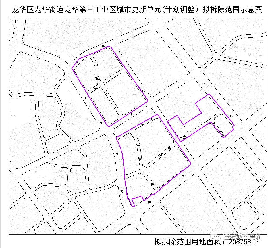 此次公示為計劃調(diào)整公告,擬拆除重建用地面積208758㎡,擬拆除范圍內(nèi)應(yīng)落實用于城市基礎(chǔ)設(shè)施、公共服務(wù)設(shè)施、政府公益性項目用地總面積不少于42204平方米;