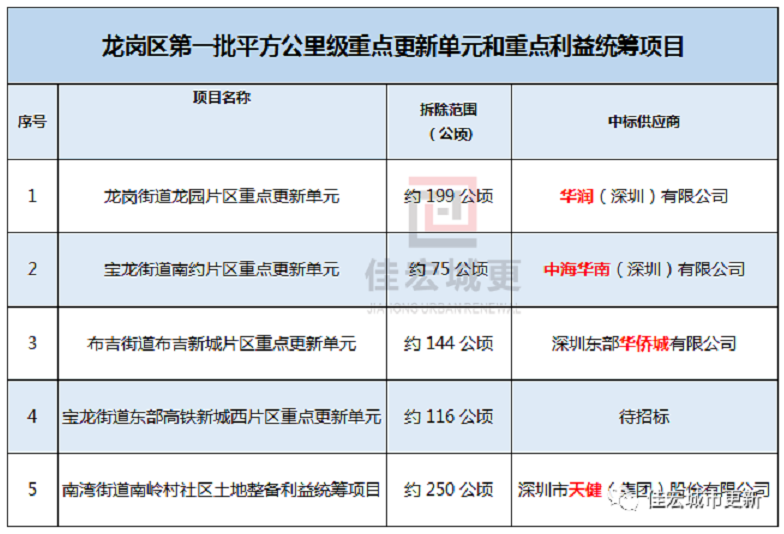 3月23日,龍崗召開第一批全區(qū)平方公里級重點更新單元和重點利益統(tǒng)籌項目推介會,率先在全市一次性推出包括4個重點更新單元項目和1個重點利益統(tǒng)籌項目。