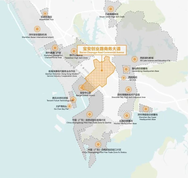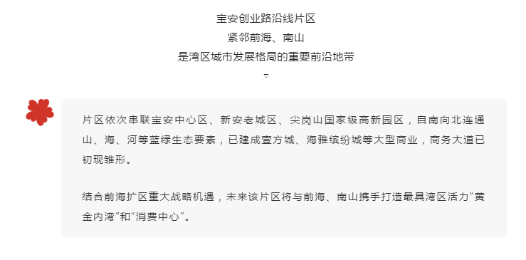 創(chuàng)業(yè)路沿線片區(qū)是串聯(lián)寶安中心區(qū)、尖崗山新興產業(yè)聚集地的重要城市發(fā)展軸