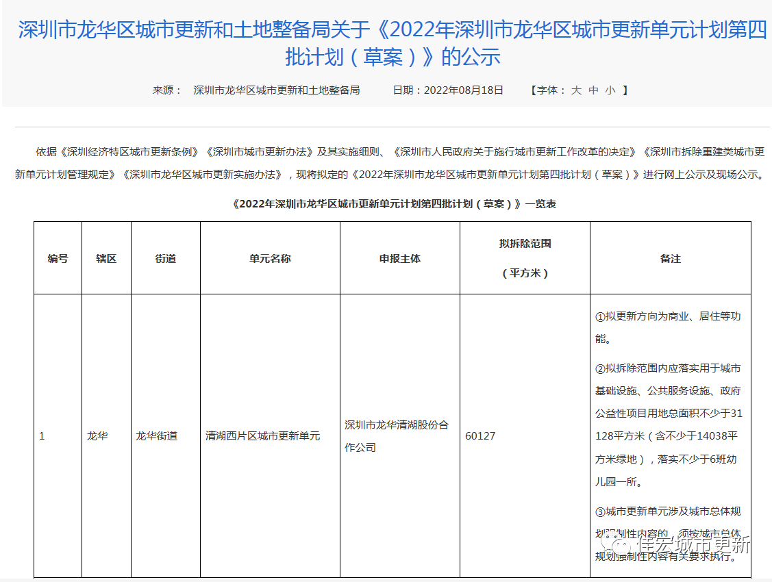 【摘要】8月18日,深圳市龍華區(qū)城市更新和土地整備局發(fā)布《2022年深圳市龍華區(qū)城市更新單元計(jì)劃第三批、第四批計(jì)劃(草案)》的公示。