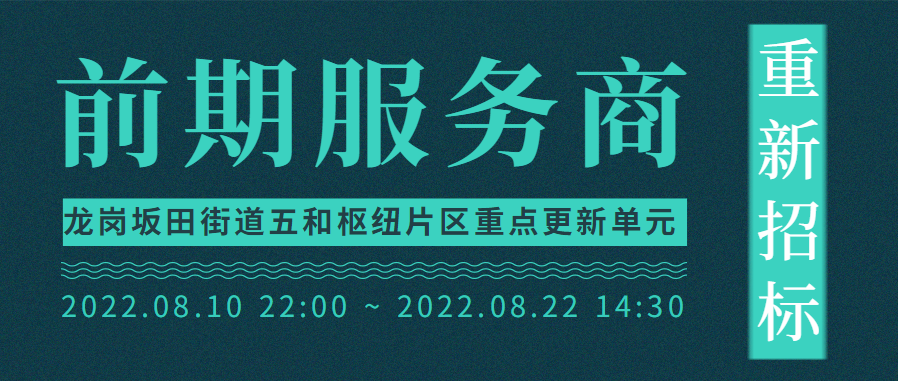 ◆ 2022年8月10日,深圳公共資源交易中心再次發(fā)布關(guān)于公開征求《深圳市龍崗區(qū)坂田街道五和樞紐片區(qū)重點更新單元前期服務(wù)》招標公告,投標截止時間:2022年08月22日 14:30:00(北京時間) 。