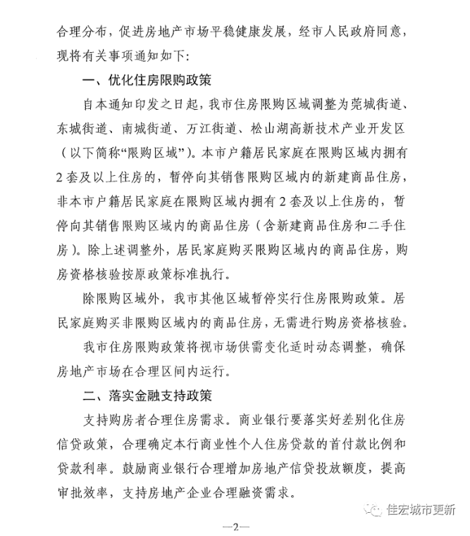 東莞市住建局在通知中表示,此次限購政策的優(yōu)化調(diào)整,將有利于向中心城區(qū)和核心區(qū)域以外疏導(dǎo)住房需求,也有利于更好落實(shí)金融支持政策,加大對(duì)合理購房信貸需求的支持力度。