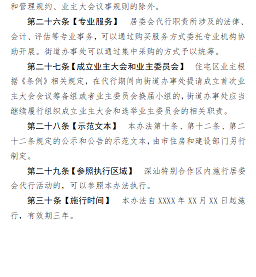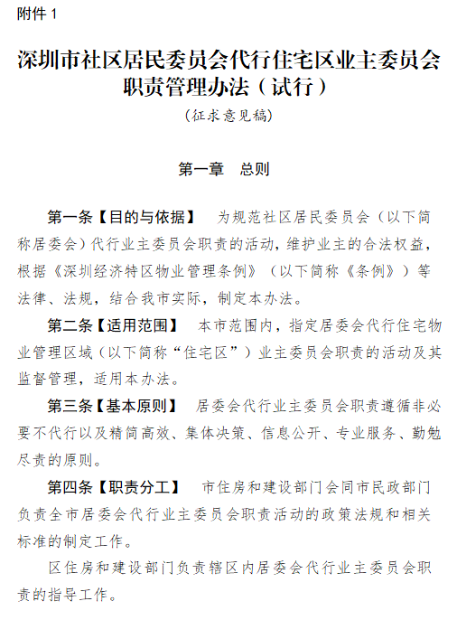 【摘要】2月22日,深圳住建局和深圳民政局聯(lián)合發(fā)布《《深圳市社區(qū)居民委員會(huì)代行住宅區(qū)業(yè)主委員會(huì)職責(zé)管理辦法(試行)(征求意見(jiàn)稿)》,征求意見(jiàn)截止時(shí)間:2022年3月25日。
