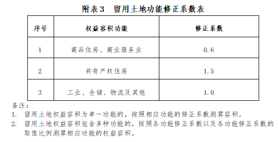 3. 留用土地功能修正系數(shù)表