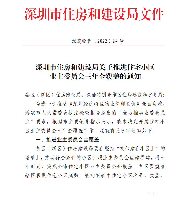 【摘要】近日,深圳市住房和建設(shè)局發(fā)布了關(guān)于推進住宅小區(qū)業(yè)主委員會三年全覆蓋的通知 建物管〔2022〕24 號。