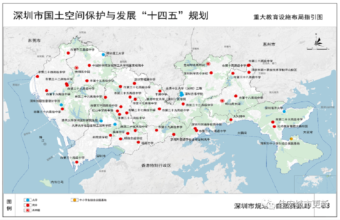 “十四五”期間,高標準新改擴建約50所公辦普通高中,新增公辦普高學位11萬個以上,高起點建設(shè)6~8所公辦中職學校。新增公辦義務(wù)教育學位67.3萬個。爭取五年新增學前教育學位12.5萬座。全市高校數(shù)量爭取達到20所,新增全日制在校生約9萬人,總量達到20萬人。規(guī)劃建設(shè)約80項醫(yī)療衛(wèi)生項目,加快推進市眼科醫(yī)院、市中醫(yī)院、香港大學深圳醫(yī)院等改擴建,增加兒科、口腔等優(yōu)質(zhì)專科資源供給。新建、改擴建11處養(yǎng)老服務(wù)設(shè)施,努力實現(xiàn)街道長者服務(wù)中心100%覆蓋。加快“新十大文化設(shè)施”建設(shè)。實現(xiàn)全市基層公共文化設(shè)施全覆蓋,融入15分鐘社區(qū)生活圈。