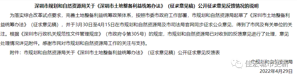【摘要】4月29日,深圳市規(guī)劃和自然資源局發(fā)布“《深圳市土地整備利益統(tǒng)籌辦法》(征求意見稿)公開征求意見反饋情況的說明”公告。