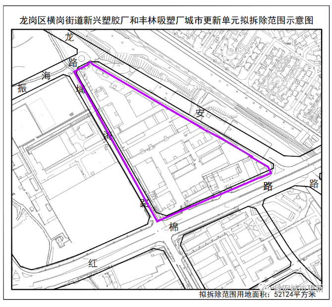項目位于深圳市位于龍崗區(qū)橫崗街道,項目擬拆除重建范圍面積為52124㎡,擬更新方向為新型產(chǎn)業(yè)、普通工業(yè)功能(更新后的普通工業(yè)廠房面積不低于現(xiàn)狀面積)。擬拆除重建用地范圍內(nèi)應(yīng)落實用地面積不小于15116平方米公共利益用地及發(fā)展備用地(其中規(guī)劃主導功能為普通工業(yè)的發(fā)展備用地用地面積不低于10614 平方米)。在更新單元規(guī)劃階段落實工業(yè)區(qū)塊線等相關(guān)法定規(guī)劃的管控要求。
