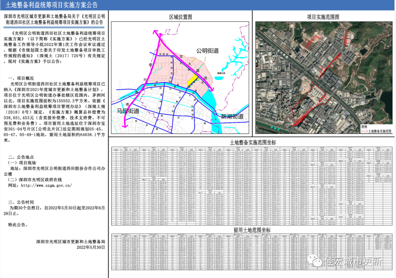 二、5月30日,深圳市光明區(qū)城市更新和土地整備局發(fā)布“光明區(qū)公明街道西田社區(qū)土地整備利益統(tǒng)籌項(xiàng)目實(shí)施方案 ”的公告,項(xiàng)目實(shí)施范圍面積為155552.3平方米。《實(shí)施方案》概算總補(bǔ)償費(fèi)為338,651,453元(含直接補(bǔ)償費(fèi)、技術(shù)支持費(fèi)、不可預(yù)見費(fèi)和業(yè)務(wù)費(fèi)),留用土地面積約64038.1平方米。
