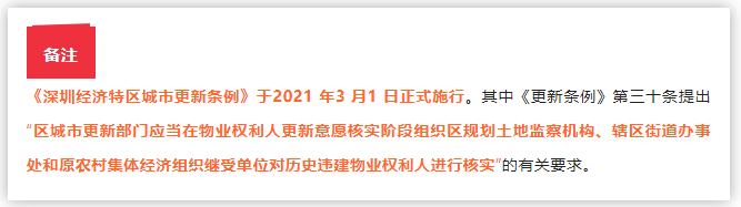 ★ 2021年7月21日,龍崗區(qū)坪地街道辦事處發(fā)布關(guān)于坪地街道惠華片區(qū)城市更新單元拆除范圍內(nèi)無產(chǎn)權(quán)權(quán)利人核實(shí)結(jié)果公示,該項(xiàng)目成為為龍崗首例適用條例確權(quán)前置更新項(xiàng)目。