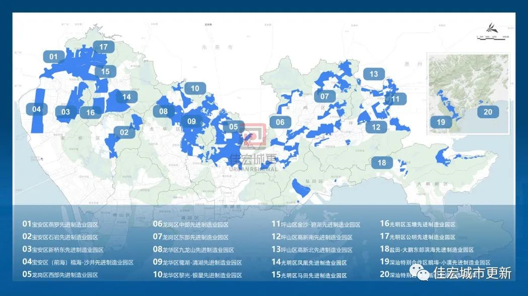 充分考慮全市各區(qū)產(chǎn)業(yè)基礎(chǔ)、發(fā)展規(guī)劃、空間承載等情況,在寶安、龍崗、龍華、坪山、光明、鹽田、大鵬新區(qū)、深汕特別合作區(qū)等8個(gè)區(qū)選取產(chǎn)業(yè)基礎(chǔ)比較好、具有空間保障能力的區(qū)域打造20大先進(jìn)制造業(yè)園區(qū),其中寶安區(qū)(含前海)4個(gè)、龍崗區(qū)3個(gè)、龍華區(qū)3個(gè)、坪山區(qū)3個(gè)、光明區(qū)4個(gè)、鹽田區(qū)和大鵬新區(qū)合建1個(gè)、深汕特別合作區(qū)2個(gè);總規(guī)劃用地面積約300平方公里,按照啟動(dòng)區(qū)、拓展區(qū)、儲(chǔ)備區(qū)有計(jì)劃釋放工業(yè)用地面積約60平方公里。