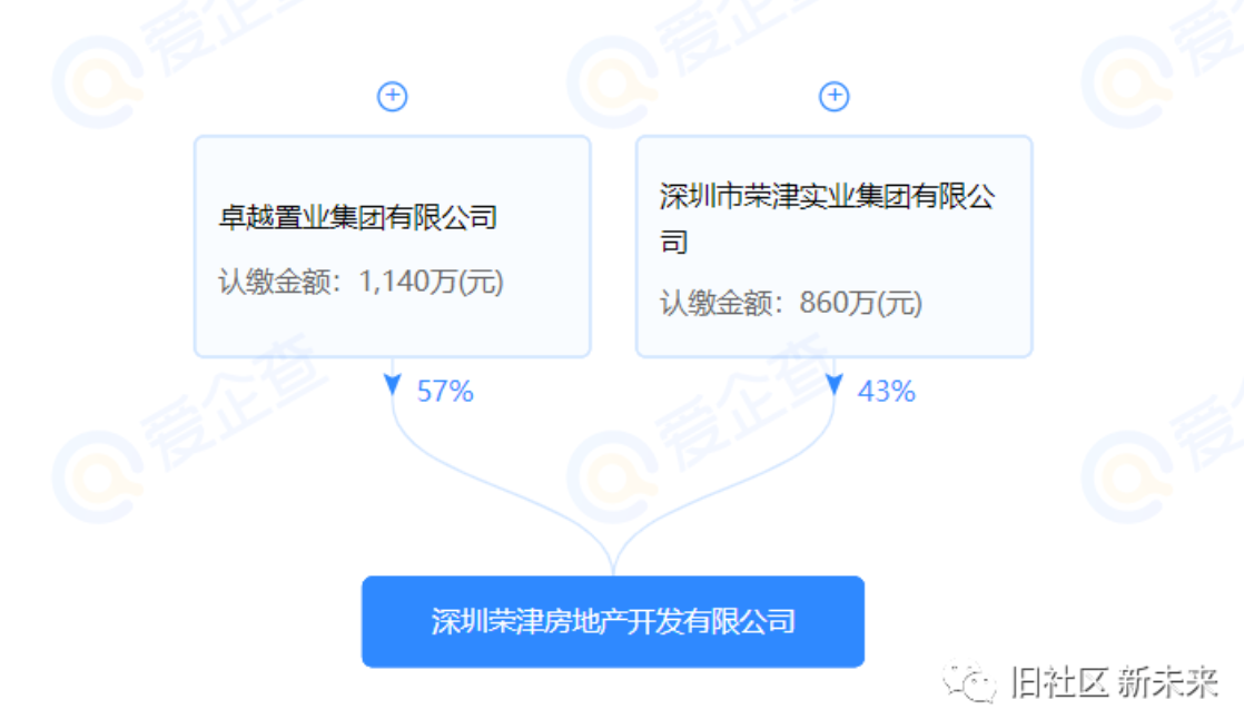 經(jīng)工商信息查詢,深圳榮津房地產(chǎn)開發(fā)有限公司是卓越集團(tuán)與榮津?qū)崢I(yè)集團(tuán)合資公司,大股東為卓越集團(tuán)。