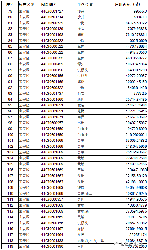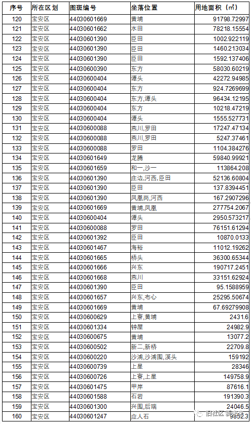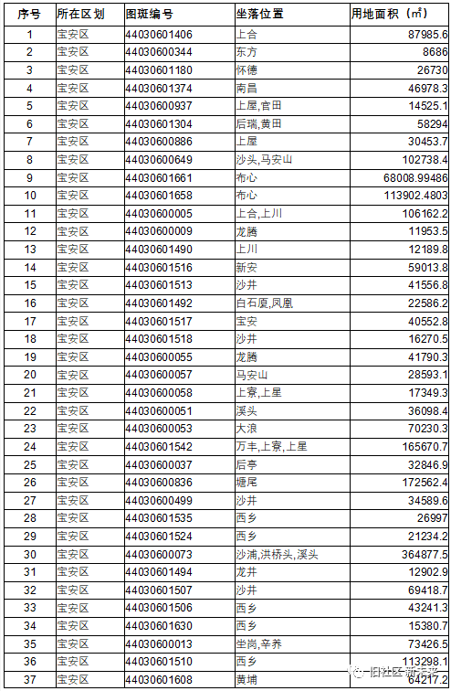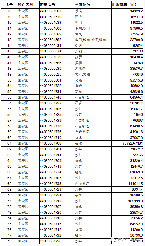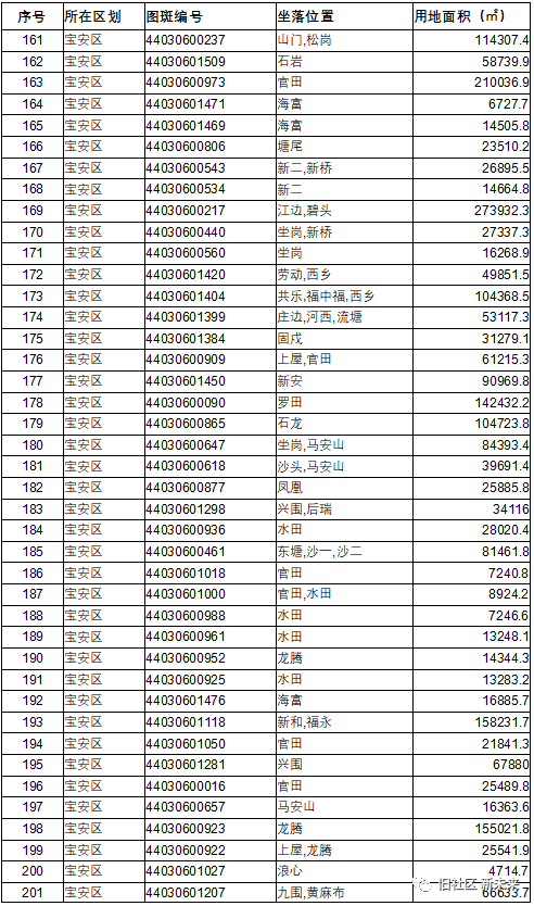 深圳市“三舊”改造標(biāo)圖建庫地塊信息一覽表